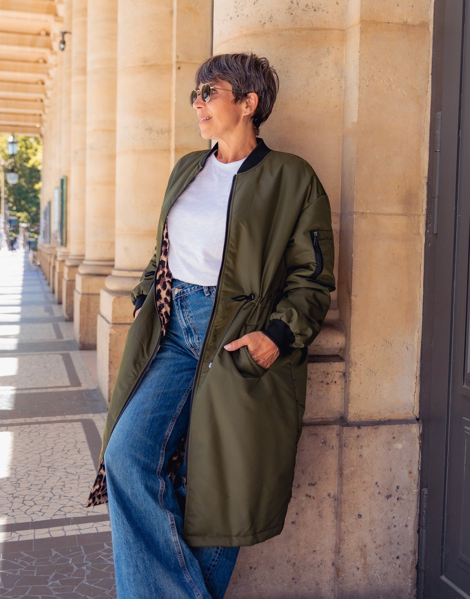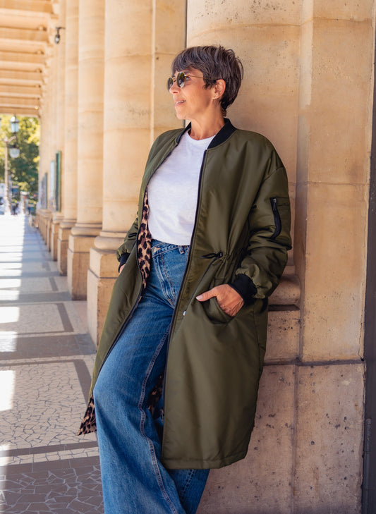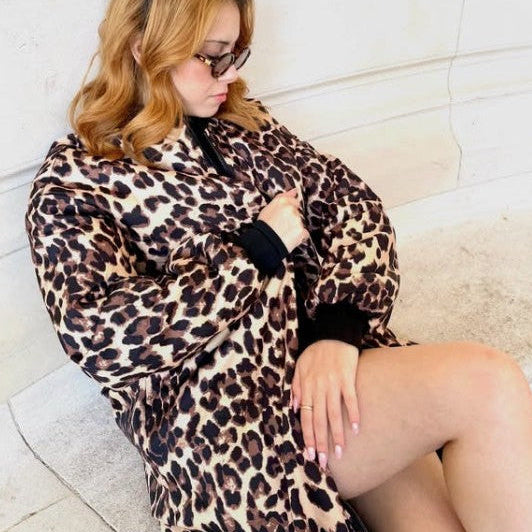 PARKA BOMBER LONG RÉVERSIBLE EN INTÉRIEUR LÉOPARD