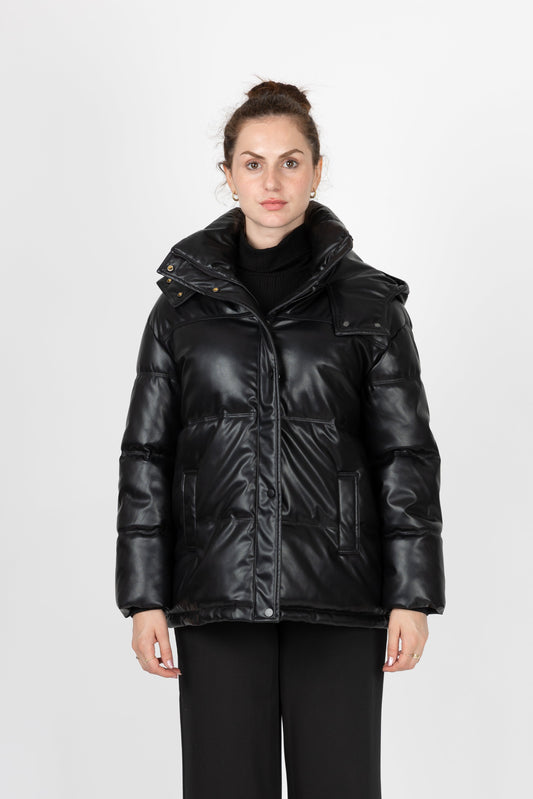 DOUDOUNE EN SIMILICUIR AVEC CAPUCHE