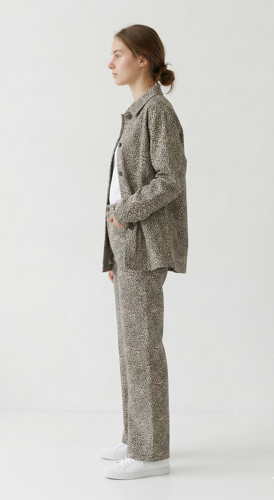 VESTE BLAZER SATINÉ IMPRIMÉ LÉOPARD