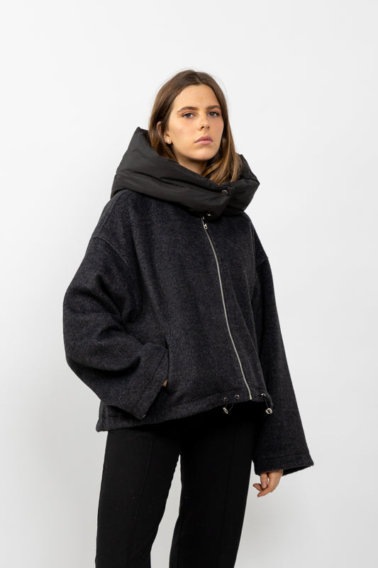 DOUDOUNE EN SIMILICUIR AVEC CAPUCHE