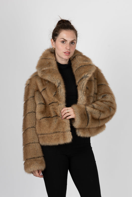 MANTEAU AVEC COL FAUSSE FOURRURE MOUTON DE MONGOLIE