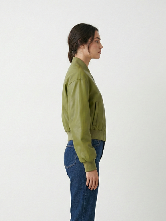 SHORT FAUX LEATHER BOMBER JACKET