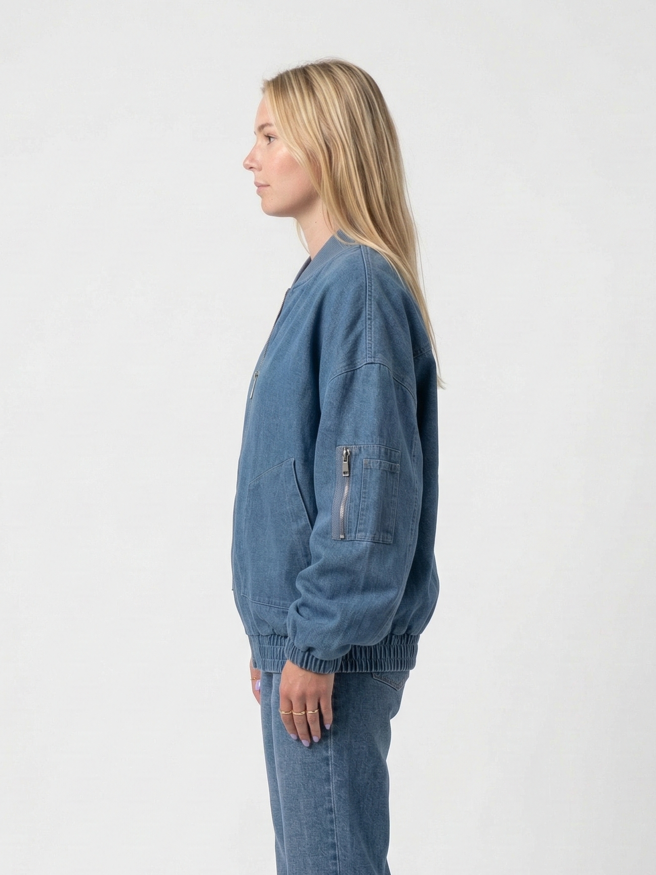 Embrace the timeless style of the denim bomber jacket. Its comfortable fit and metal zip closure make it an easy-to-wear piece for everyday wear. Pair it with a white t-shirt and jeans for a casual look, or with a dress for a more feminine style.