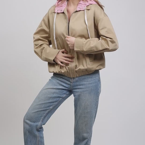 BLOUSON À CAPUCHE AMOVIBLE CONTRASTÉE