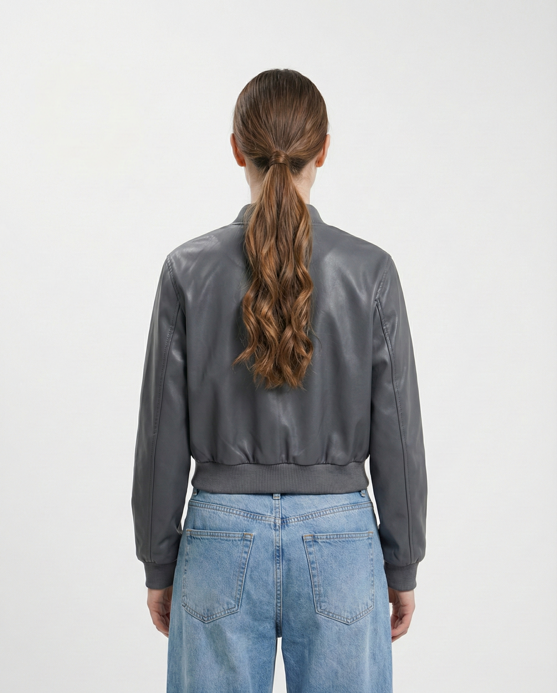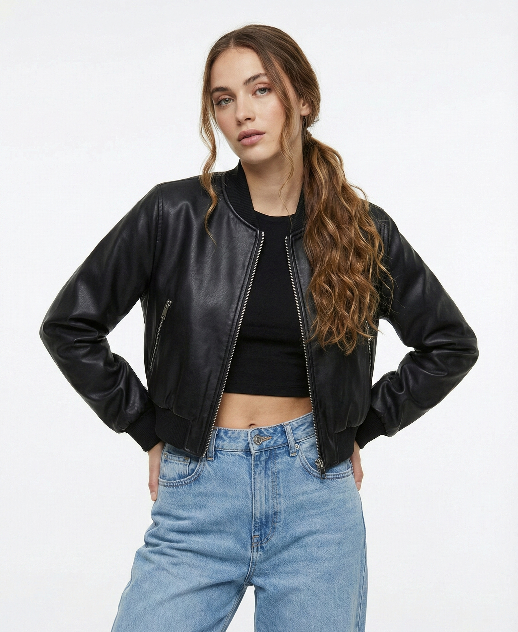 Vous savez déjà que nous sommes obsédés par le faux cuir et les bombers, alors nous devions évidemment combiner les deux pour créer ce joli modèle.