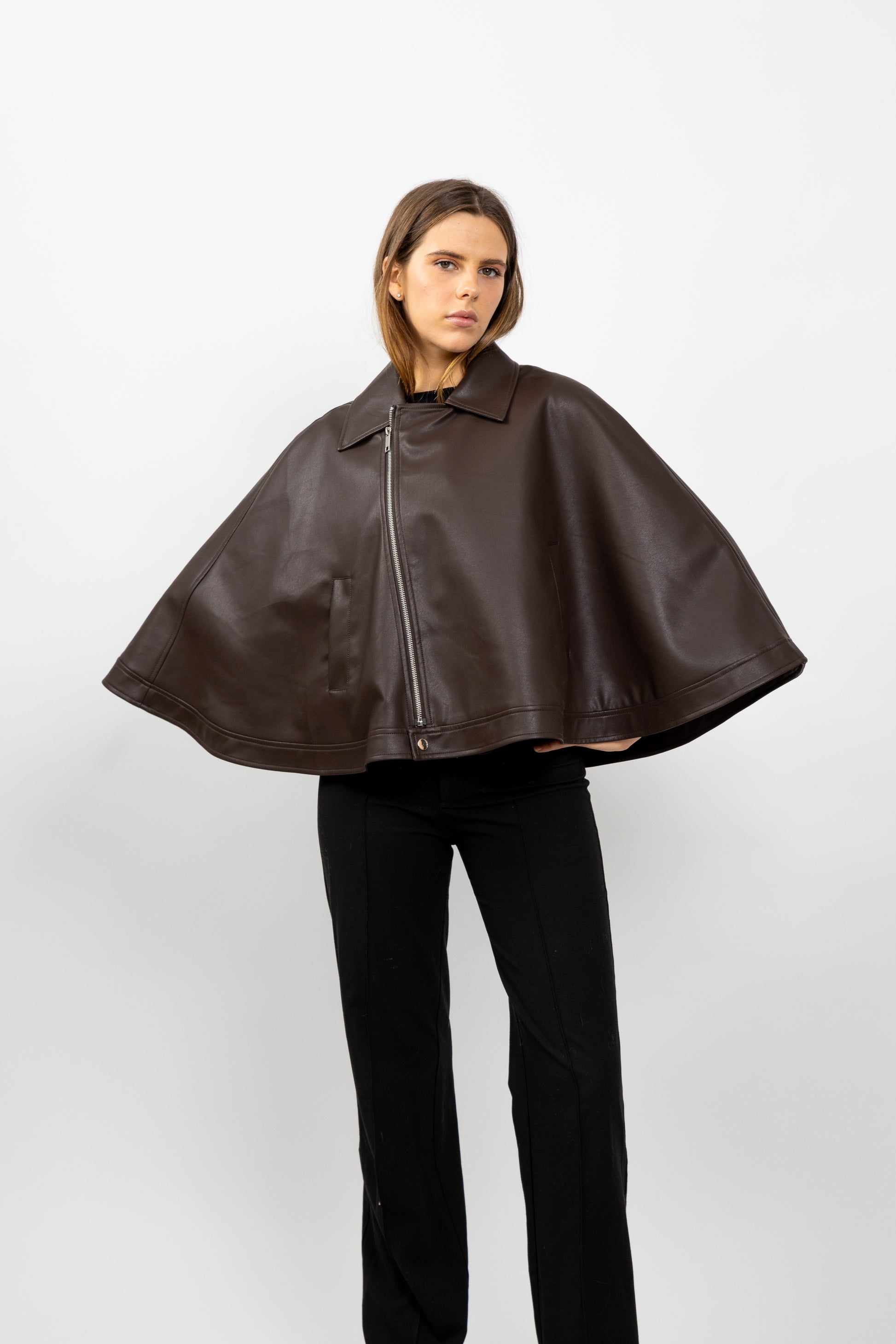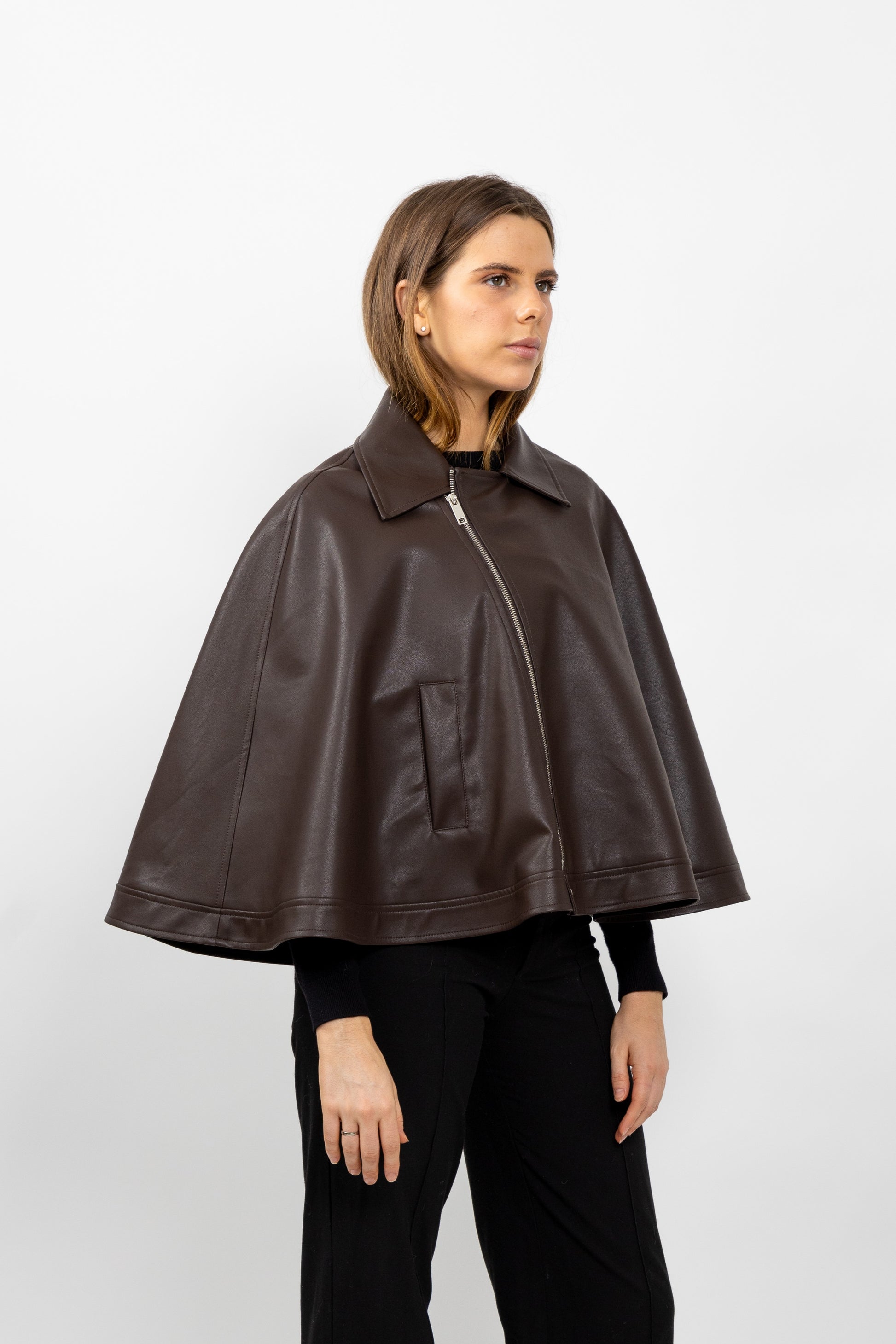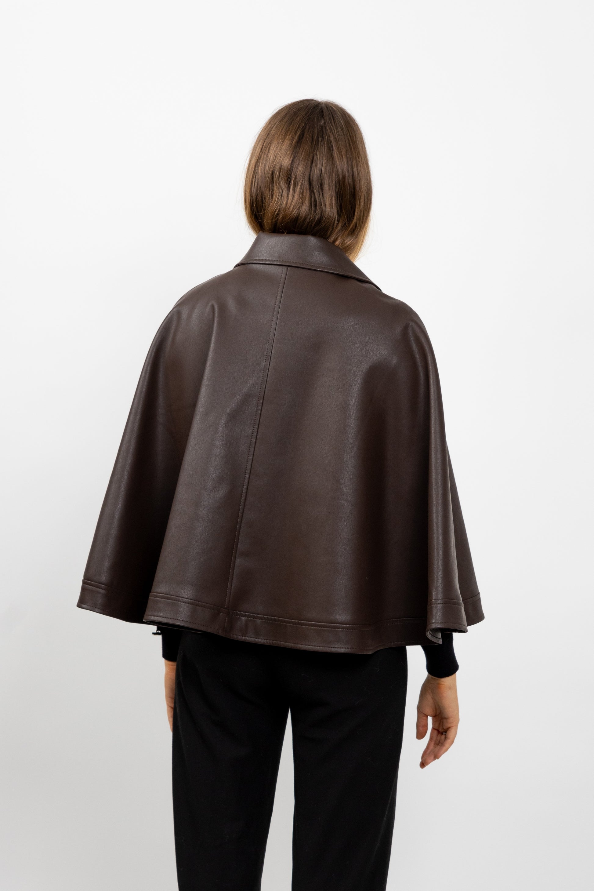 Découvrez notre cape en simili cuir, l'alliée idéale pour affronter la mi-saison avec style. Très élégante, elle se superpose aisément sur vos pulls, robes ou chemisiers pour un look chic et tendance. Son tombé parfait et son effet cuir en font un incontournable de la saison.