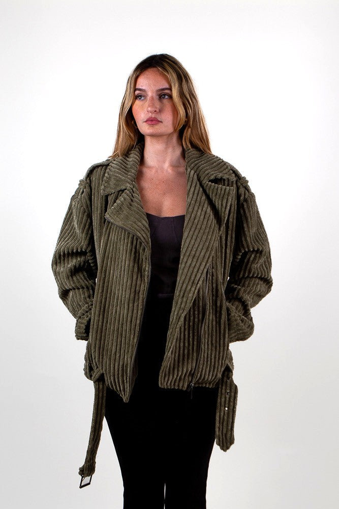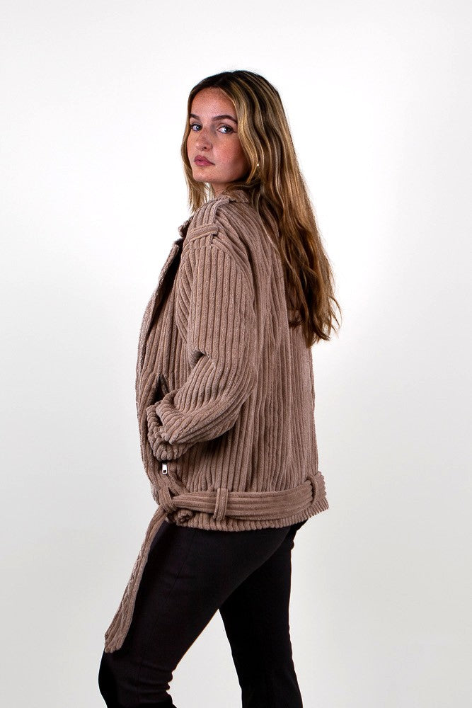Perfecto en velours côtelé avec fermeture zippée et ceinture à la taille. Ce perfecto est ultra tendance et vous tiendra chaud avec style cette saison !