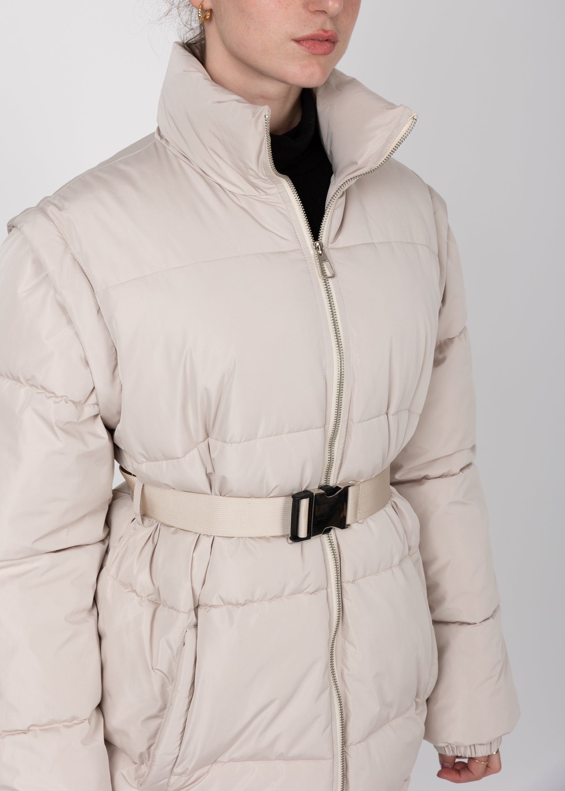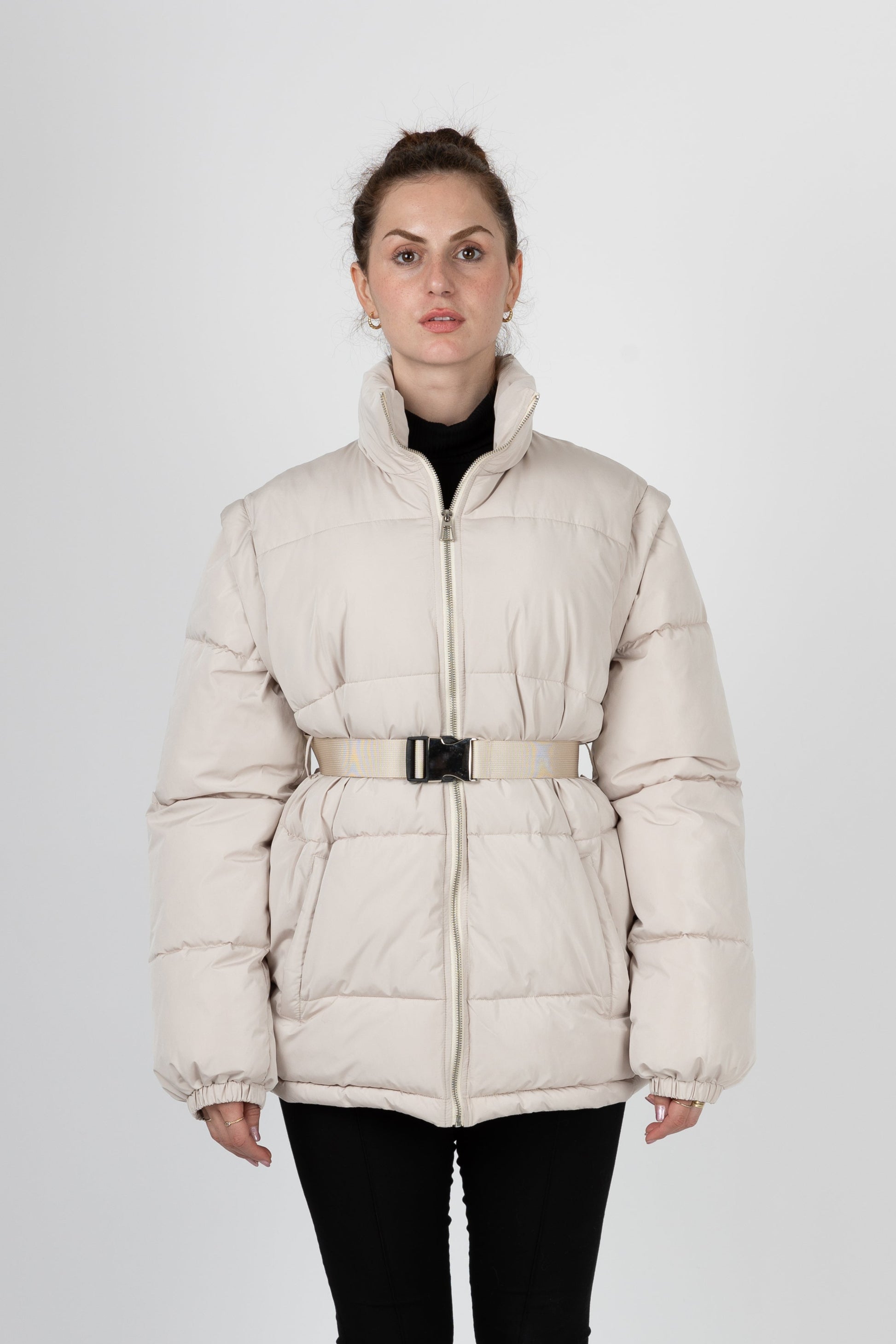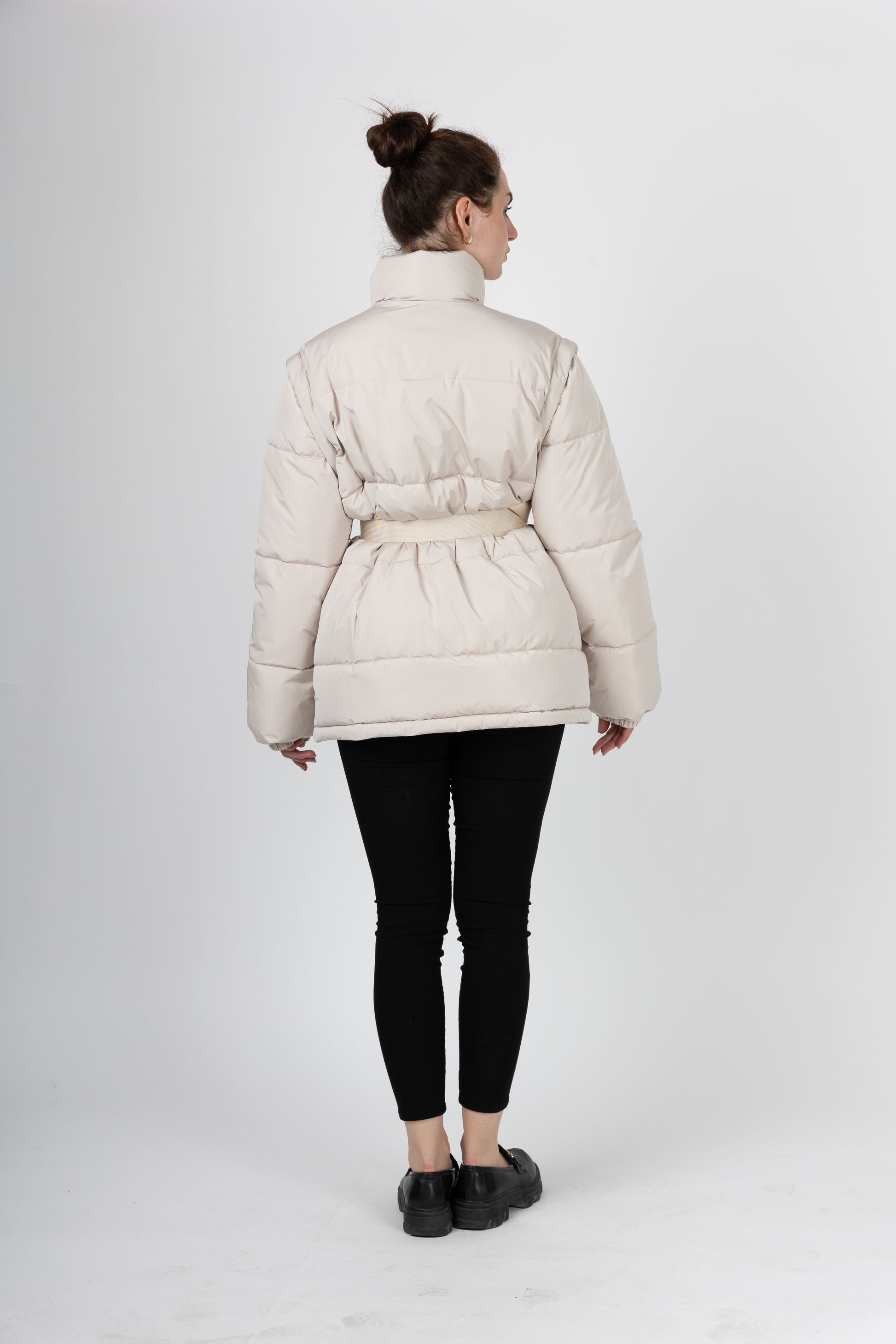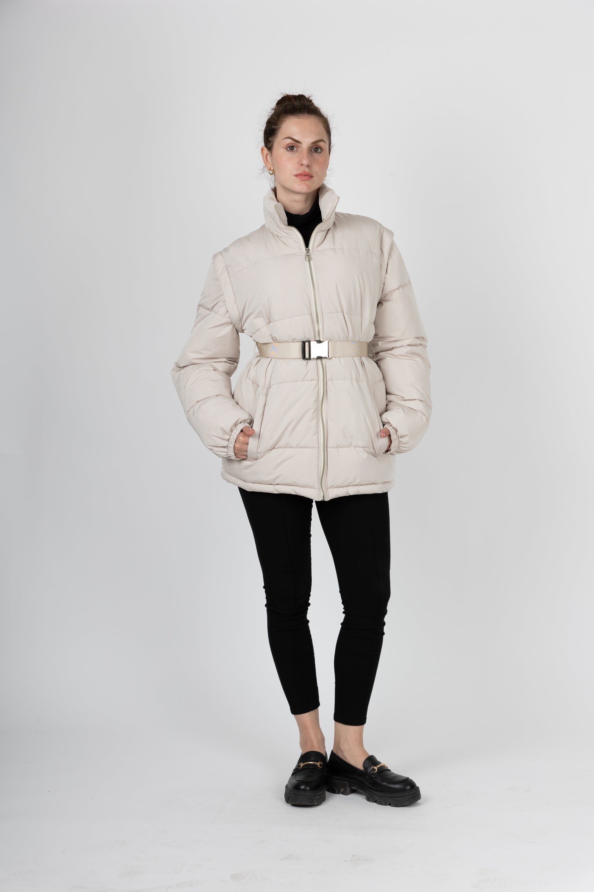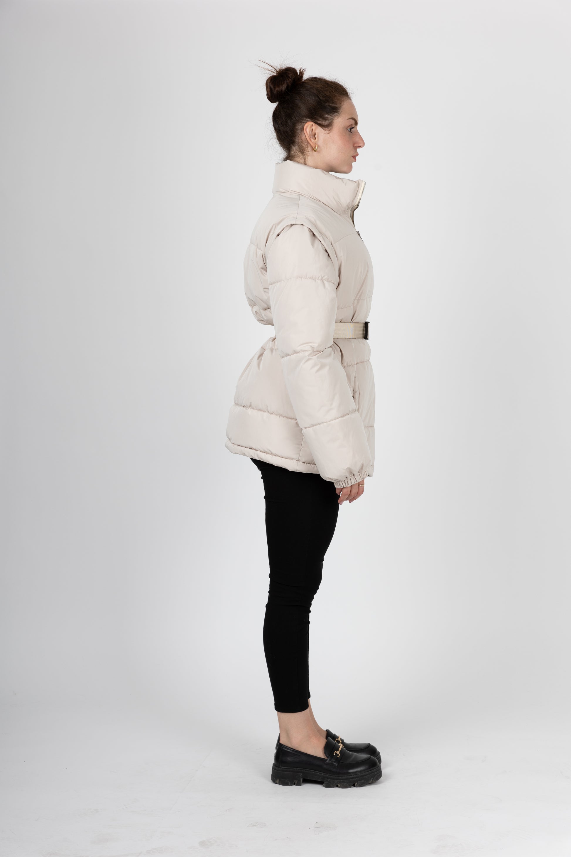 Affrontez l'automne et l'hiver avec style et polyvalence grâce à notre doudoune multifonction ! Ses manches amovibles vous permettent de l'adapter à toutes les températures, transformant facilement votre look au gré des saisons. Conçue dans un tissu résistant à l'eau, elle vous garde au sec, tandis que sa ceinture à clip métallique souligne élégamment votre taille pour une silhouette féminine. Un essentiel pour rester chic et confortable tout au long de la saison froide.