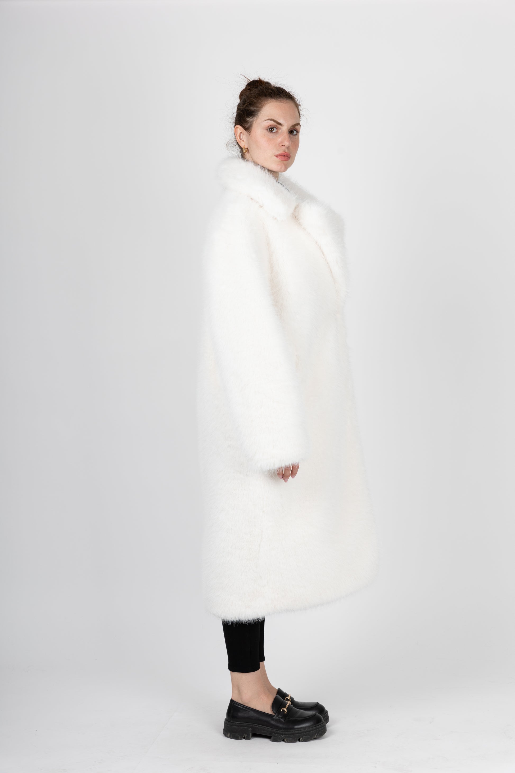 Succombez au charme intemporel de notre manteau long en fausse fourrure effet renard. Avec sa coupe élégante et épurée, il deviendra la pièce maîtresse de votre dressing. Portez-le de jour avec un jean pour un look chic et décontracté, ou superposez-le à une robe de soirée pour une allure sophistiquée et glamour. Un manteau pur et élégant qui garantit un effet saisissant, de jour comme de nuit.