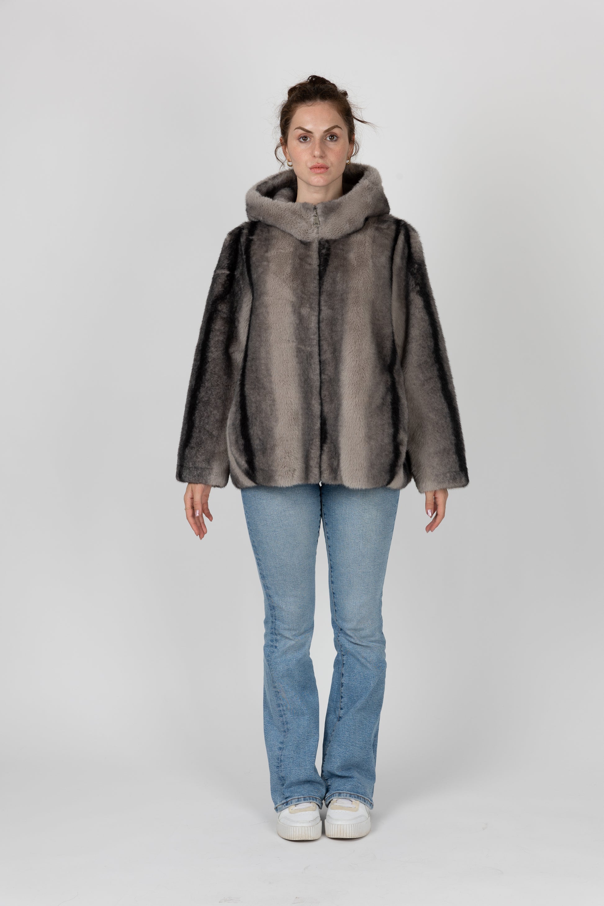 BLOUSON EN FAUSSE FOURRURE À RAYURES