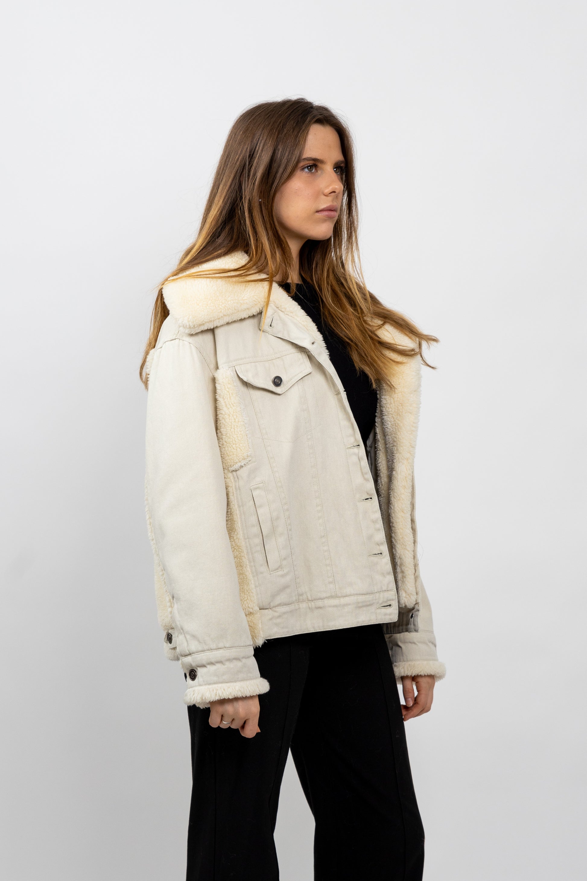 VESTE EN JEANS OVERSIZE DÉTAILS MOUTON