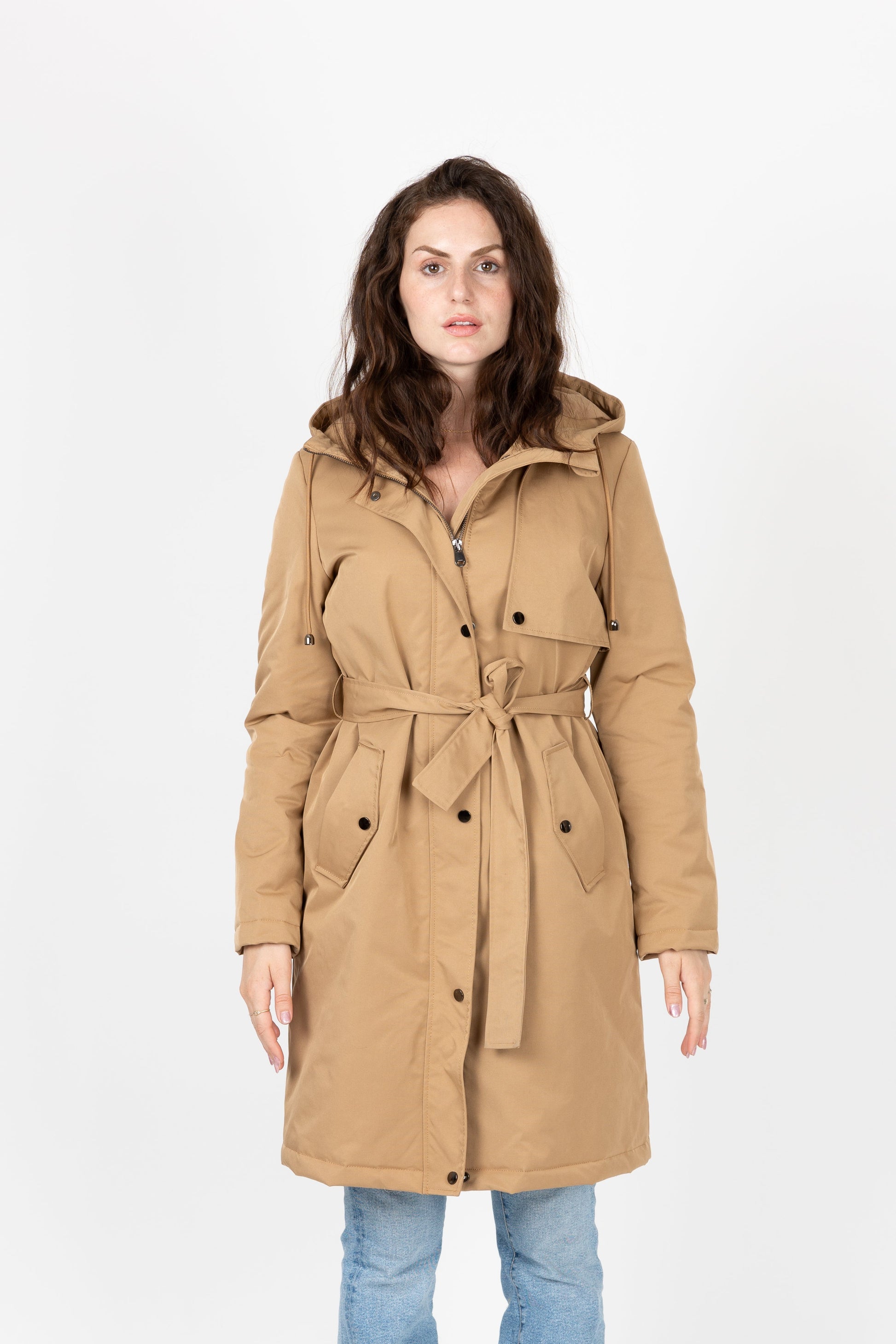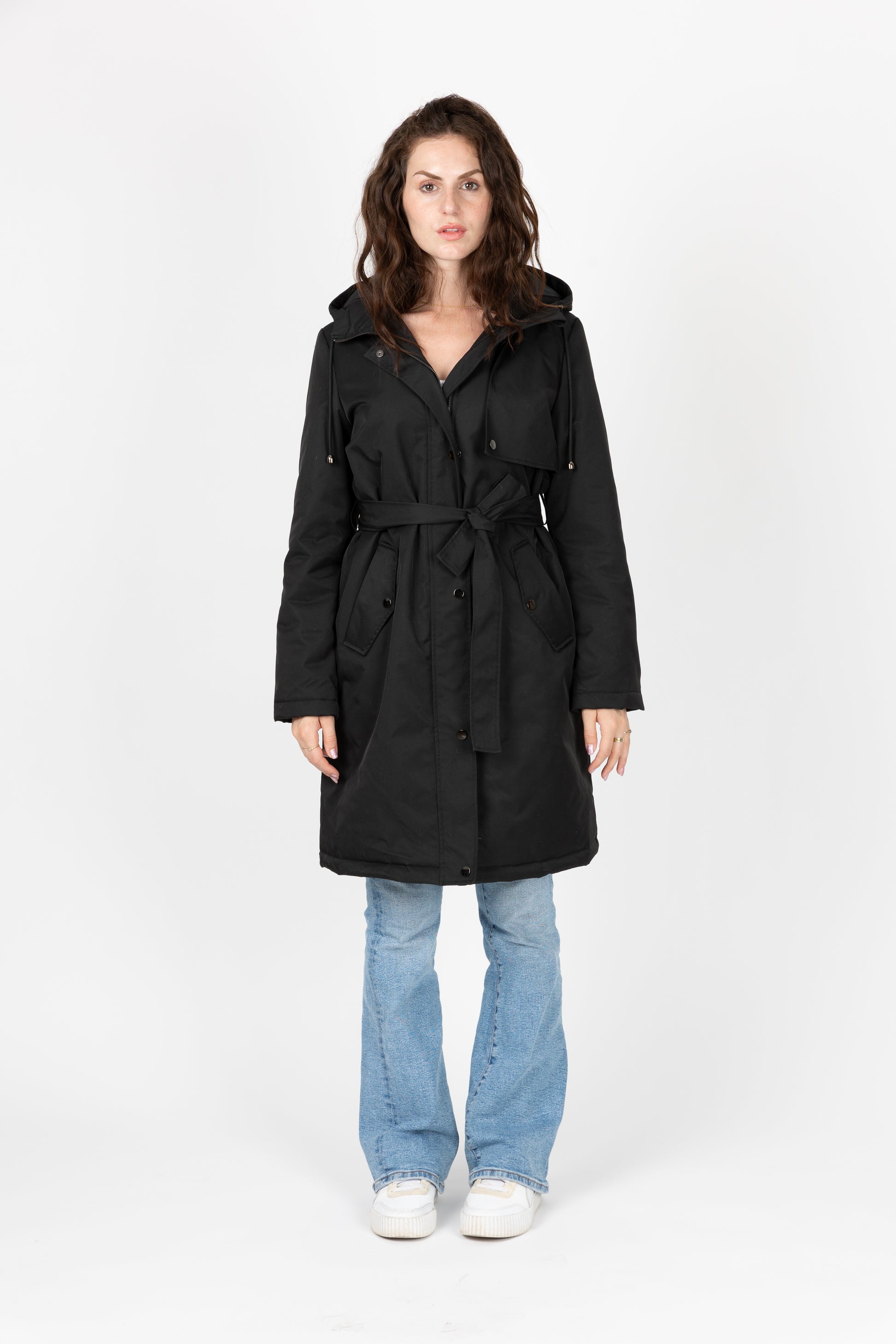 L'alliance parfaite de l'élégance et de la fonctionnalité. Redéfinissez votre style urbain avec cette pièce incontournable, conçue pour affronter les intempéries avec panache. Son tissu résistant à l'eau vous garde au sec, tandis que sa ceinture à nouer souligne élégamment votre silhouette. La capuche ajoute une touche pratique et moderne, faisant de cette parka votre alliée idéale pour toutes les saisons.
