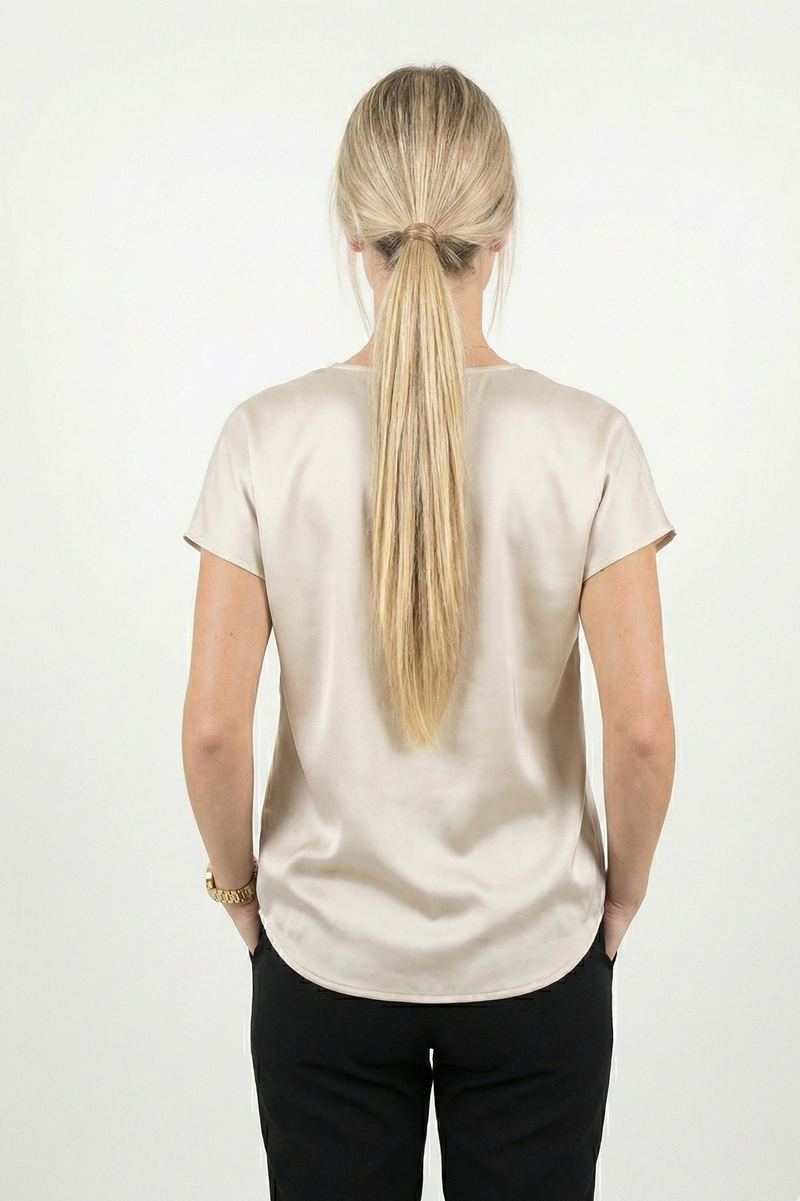 Découvrez l'élégance de notre blouse satinée à manches courtes. Cette blouse capte brillamment la lumière grâce à sa matière satinée, ajoutant une touche de glamour à chaque tenue.