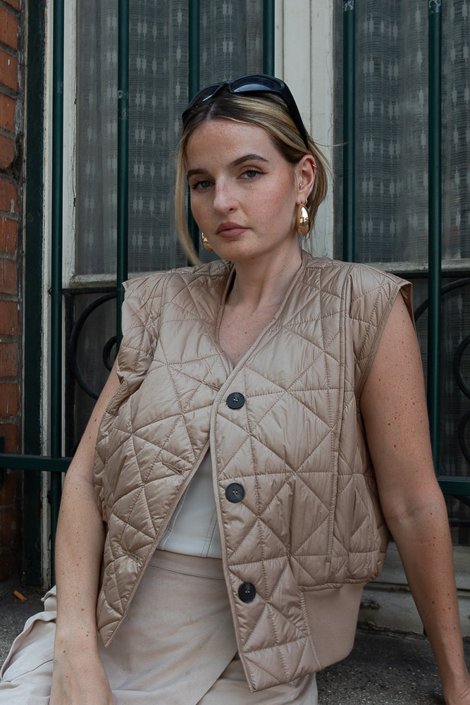 C'est peut-être l'un de nos favoris. Avec ses surpiqûres matelassées et ses coloris tendances, cette doudoune sans manches est un véritable bijou pour les tenues de mi-saison !