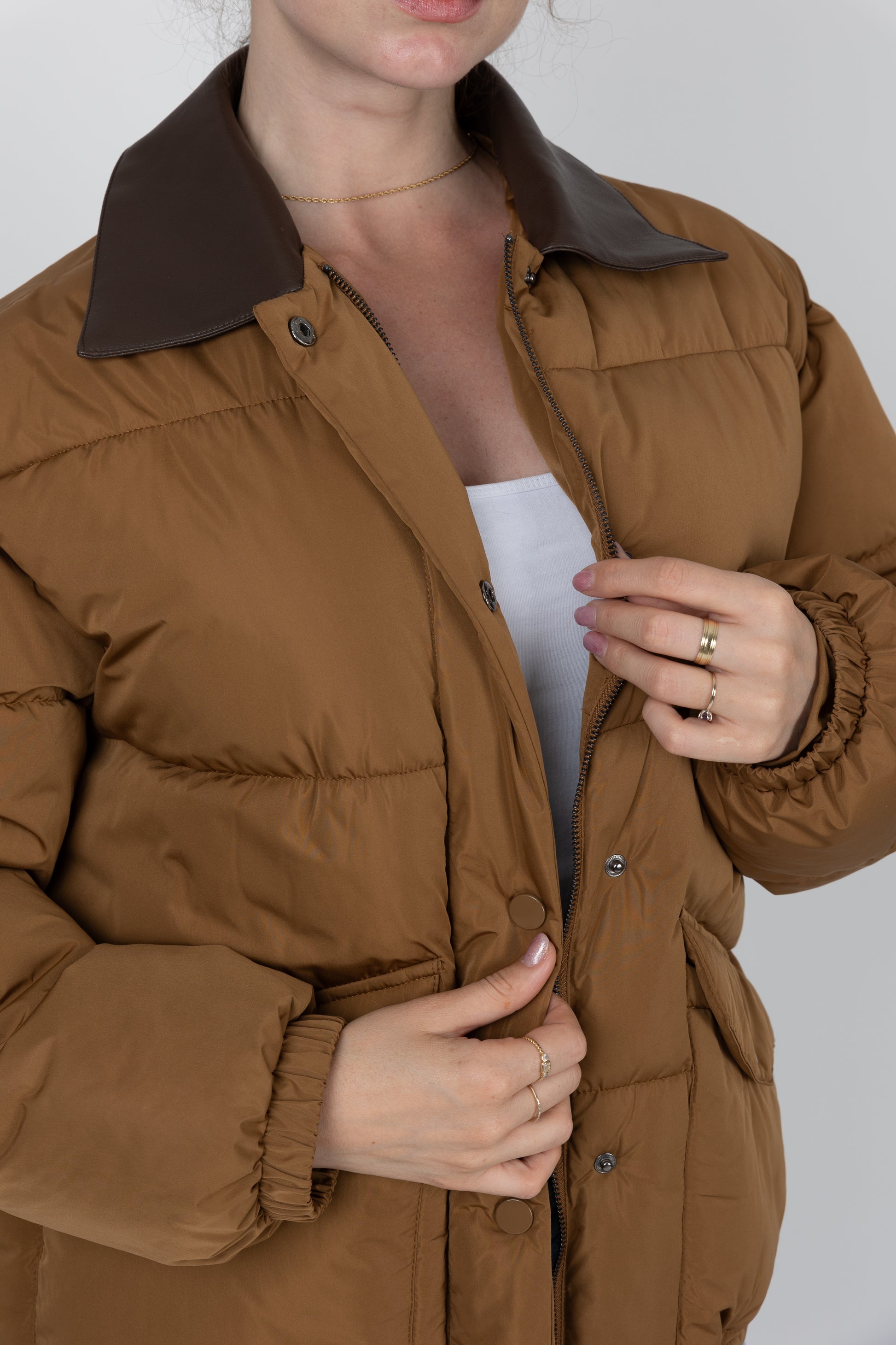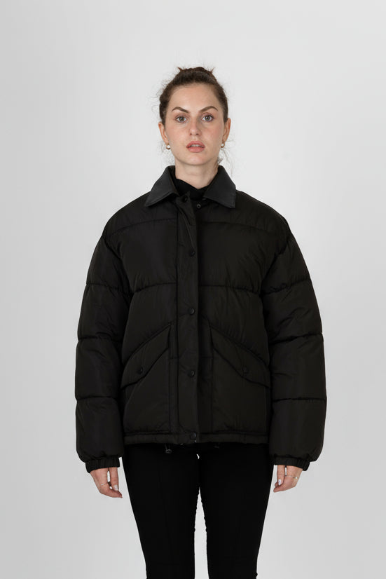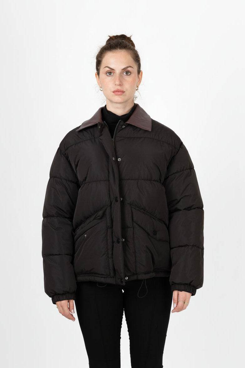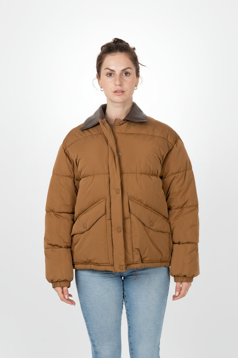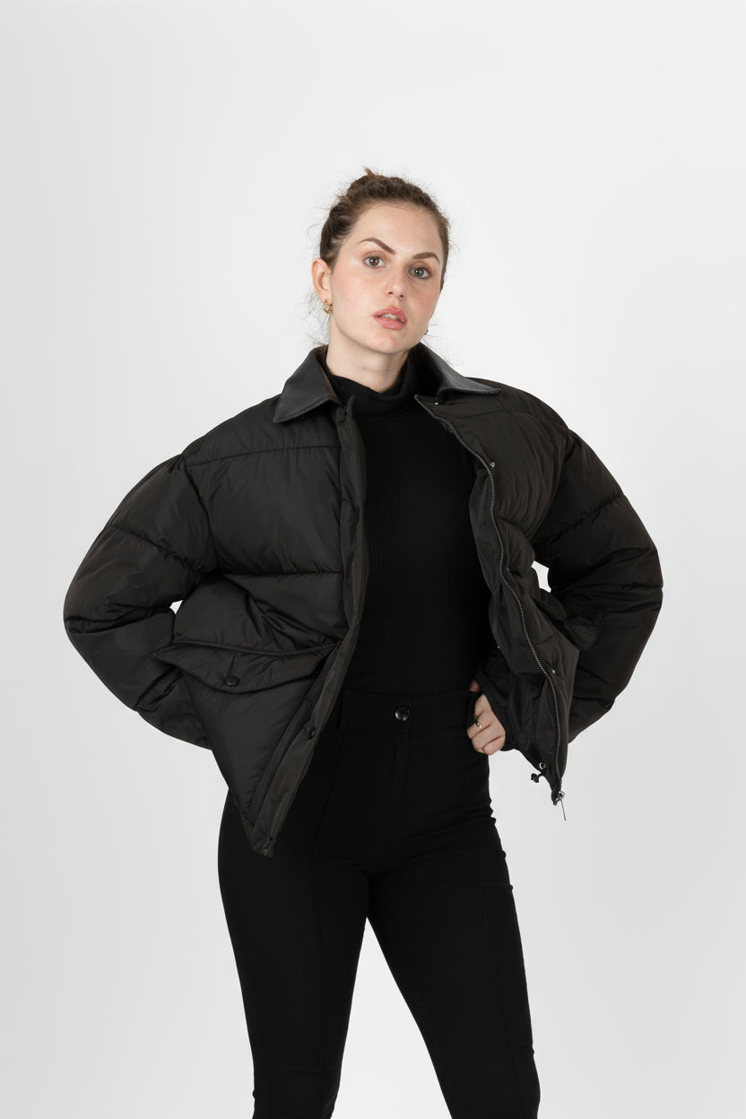 Notre doudoune redéfinit le look moderne avec son détail audacieux ! Son tissu résistant à l'eau vous protège des caprices de la météo, tandis que le col contrastant en cuir synthétique apporte une touche chic et inattendue. C'est la pièce parfaite pour allier fonctionnalité et une esthétique contemporaine.