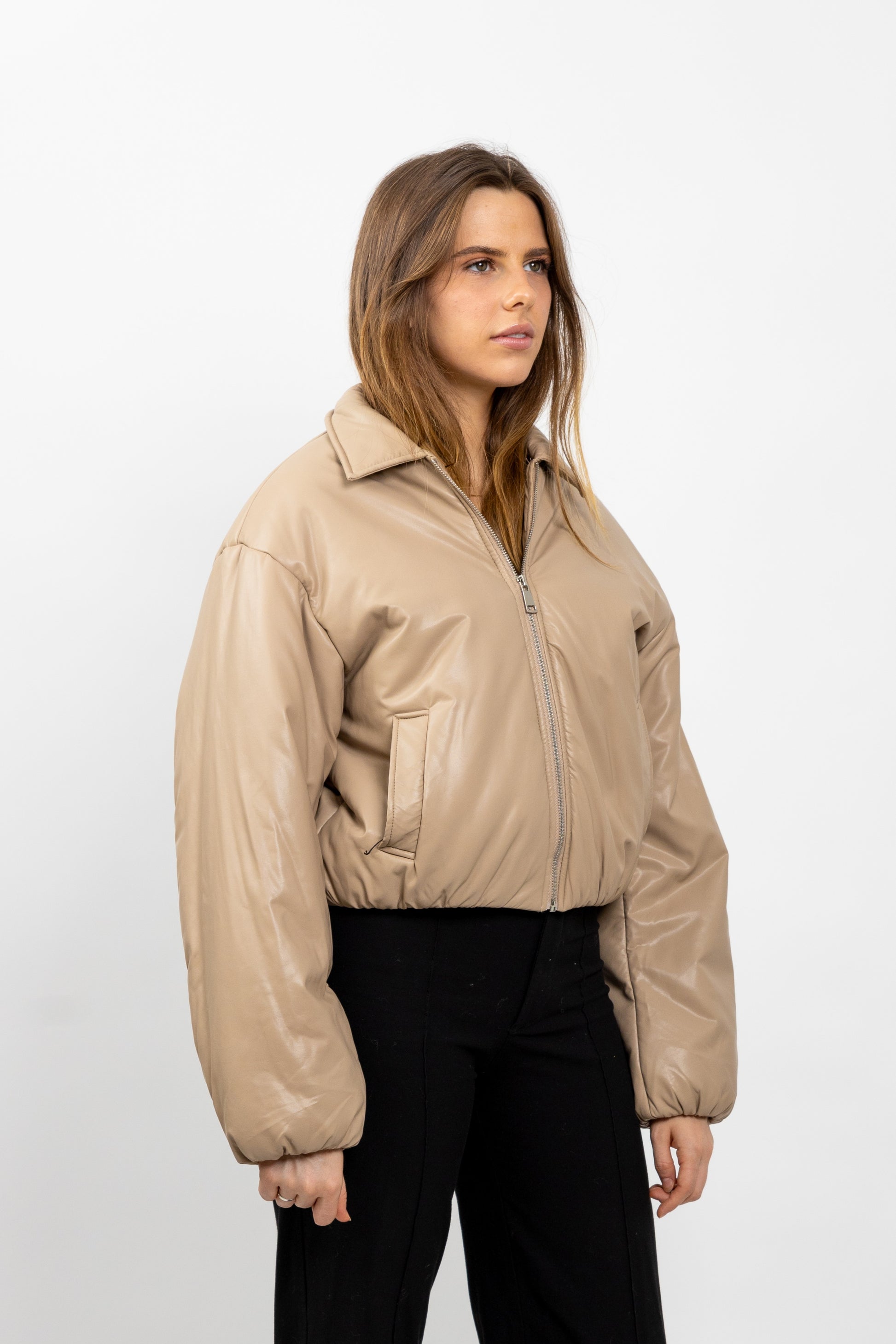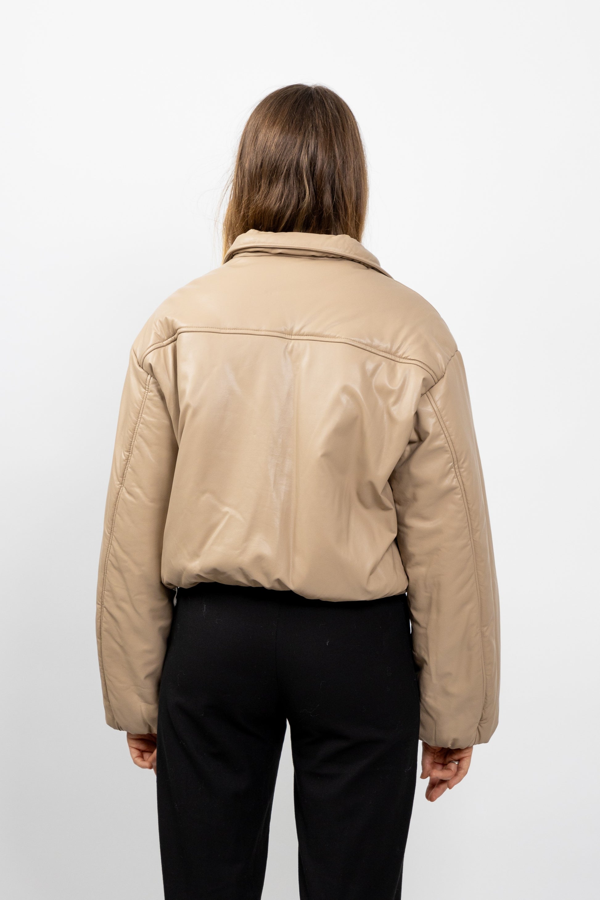 Tendance et moderne, notre doudoune courte en simili cuir est resserrée par un élastique sur le bas, créant une silhouette unique. Le contraste entre la doudoune et le similicuir lisse apporte une touche de sophistication urbaine. Parfaite pour dynamiser vos looks de saison.
