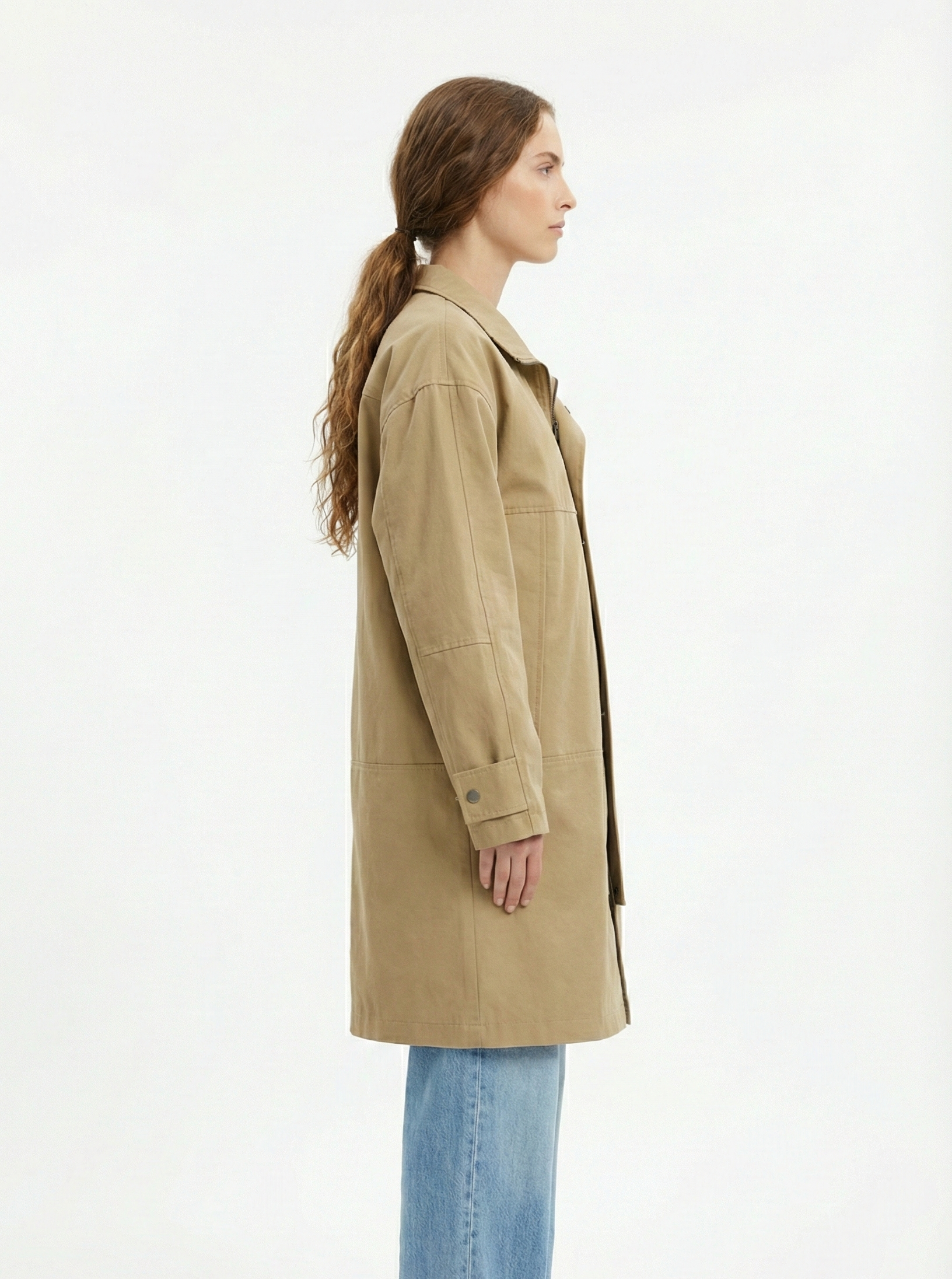- Manches longues terminées par une patte réglable avec bouton-pression