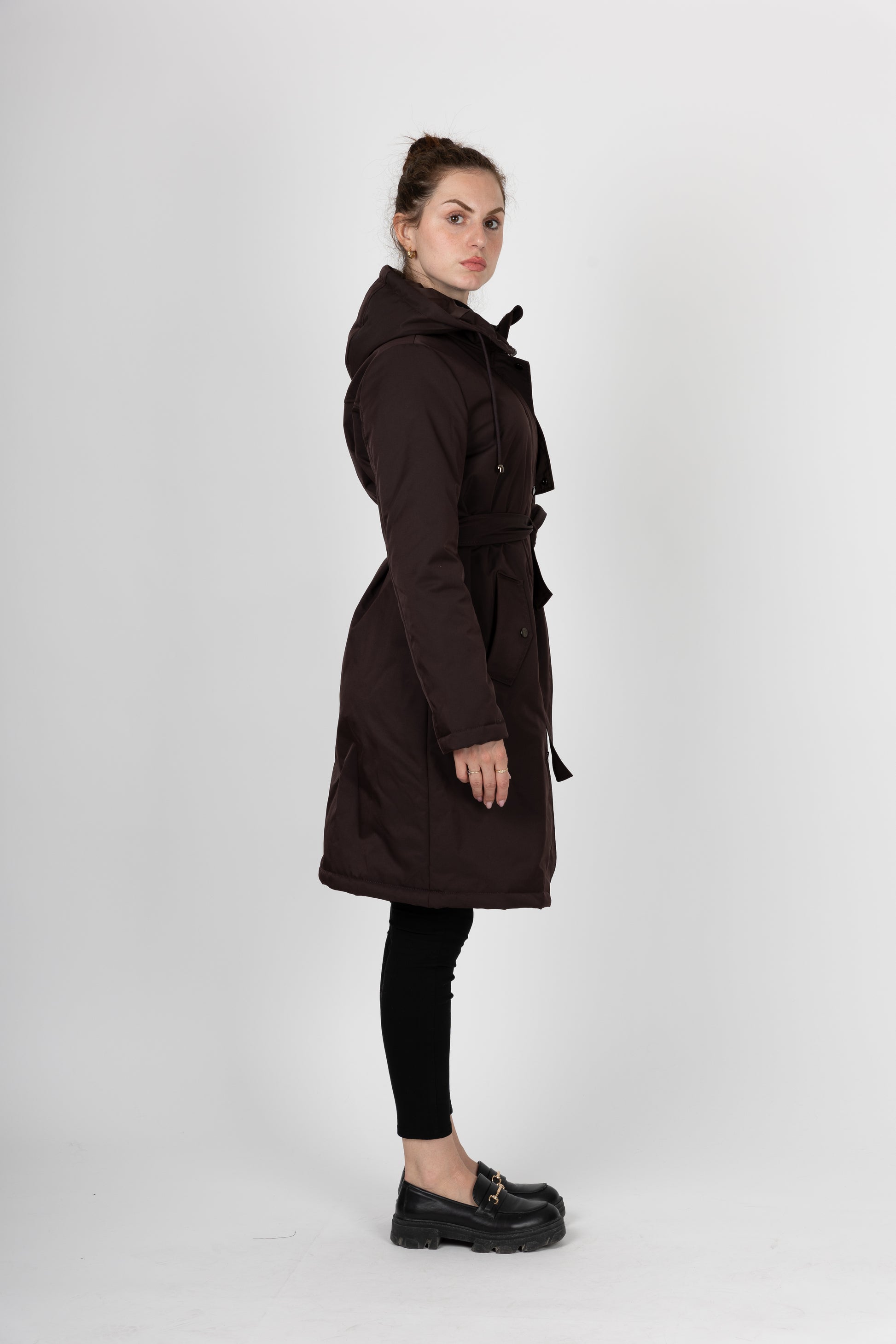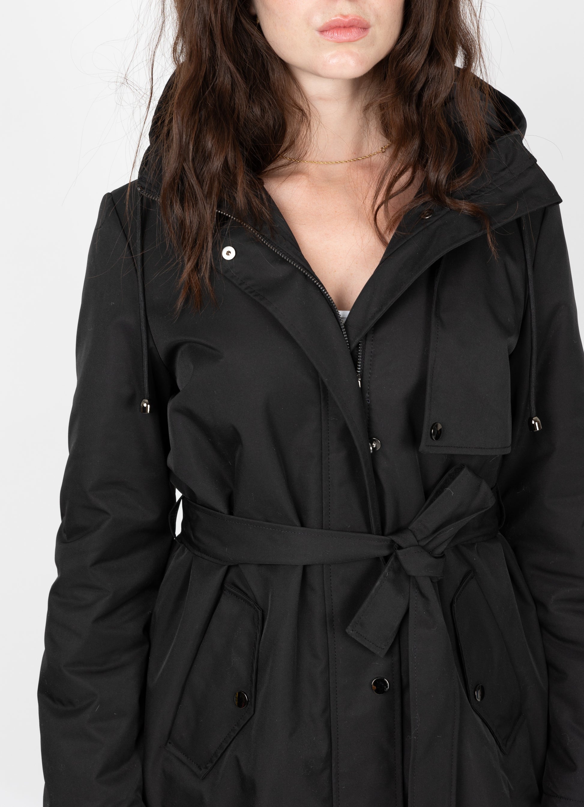 L'alliance parfaite de l'élégance et de la fonctionnalité. Redéfinissez votre style urbain avec cette pièce incontournable, conçue pour affronter les intempéries avec panache. Son tissu résistant à l'eau vous garde au sec, tandis que sa ceinture à nouer souligne élégamment votre silhouette. La capuche ajoute une touche pratique et moderne, faisant de cette parka votre alliée idéale pour toutes les saisons.