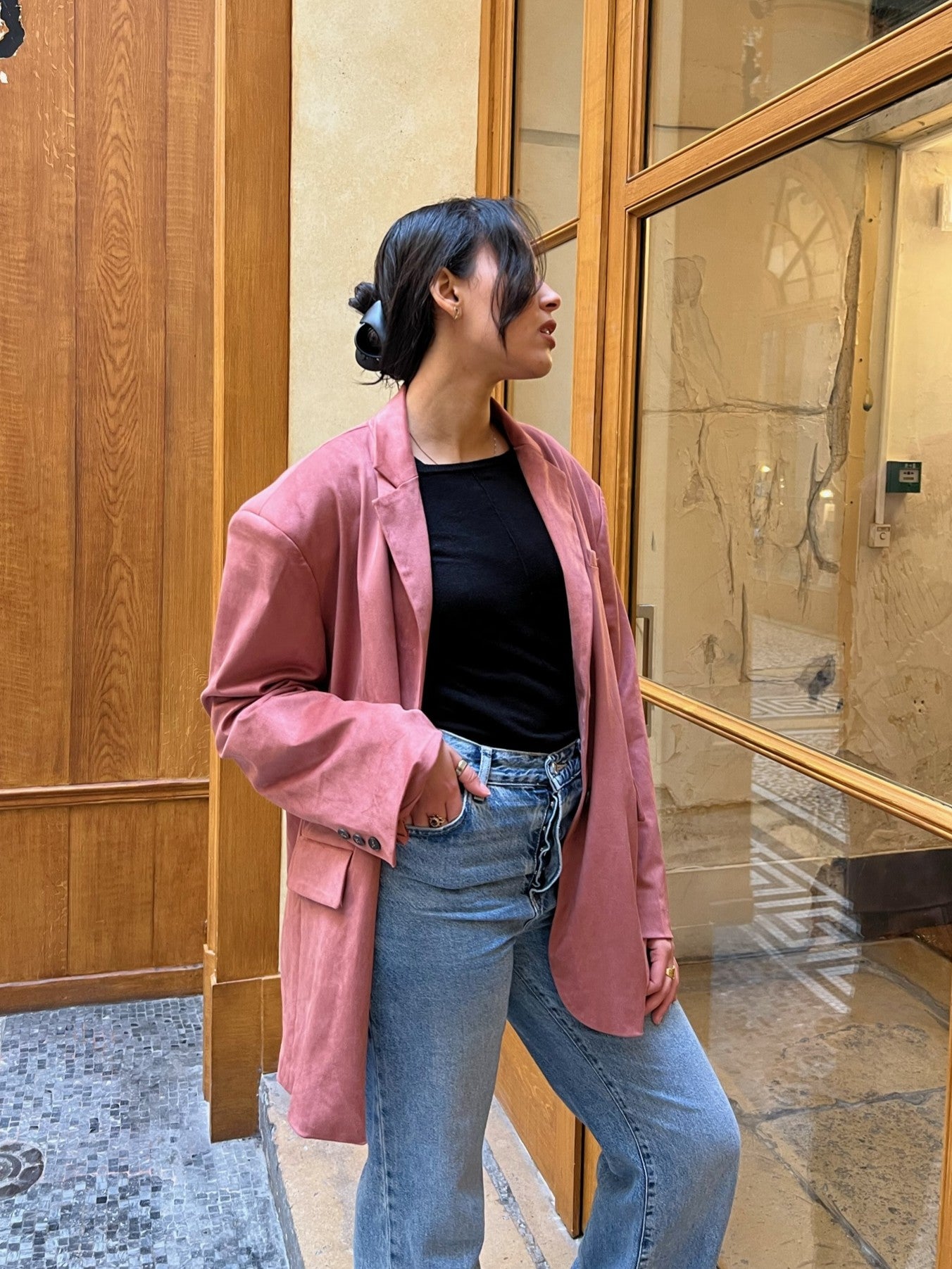 Le blazer en suédine (effet daim) est un incontournable qui se porte aussi bien au travail qu'en week-end.