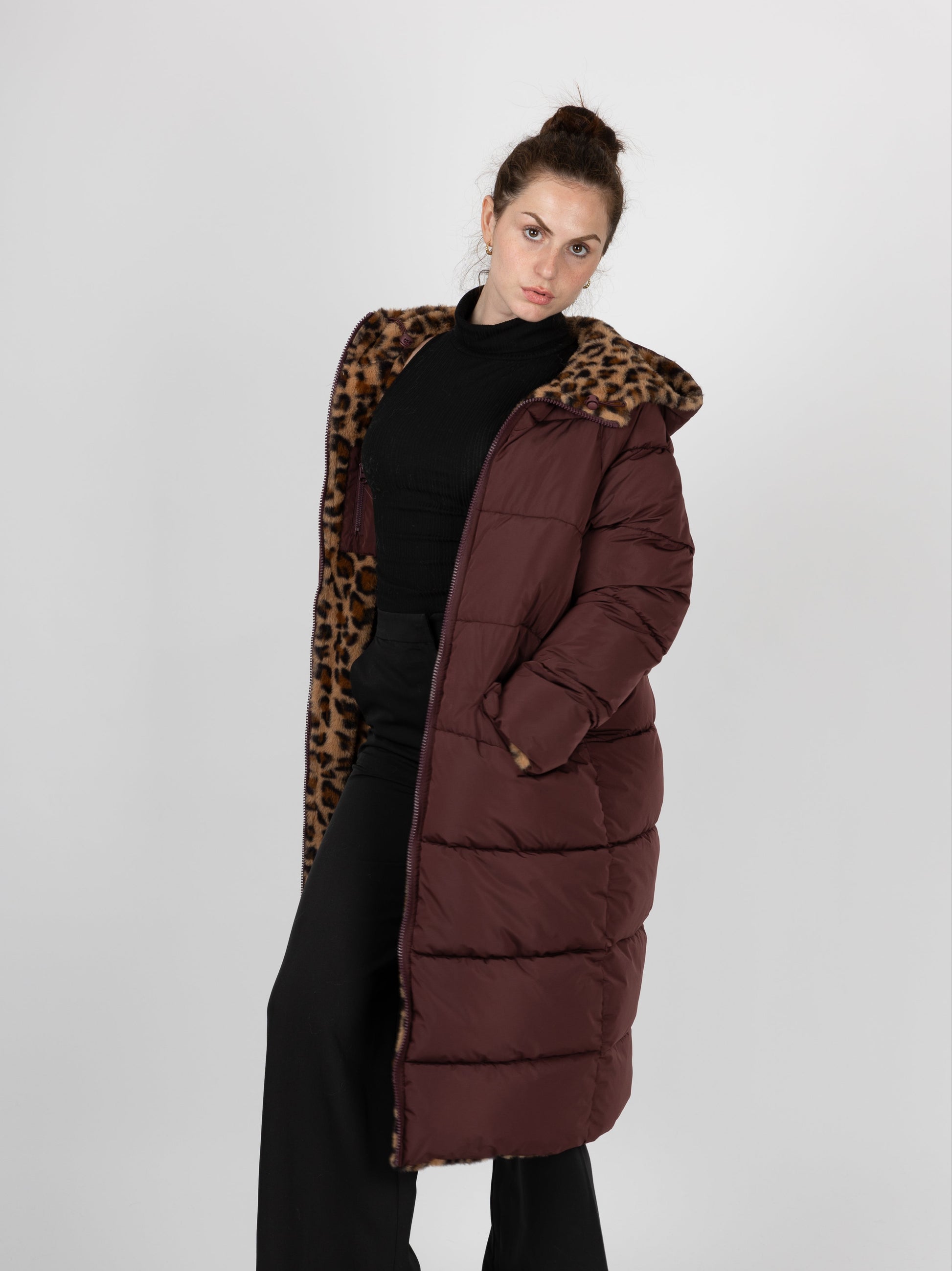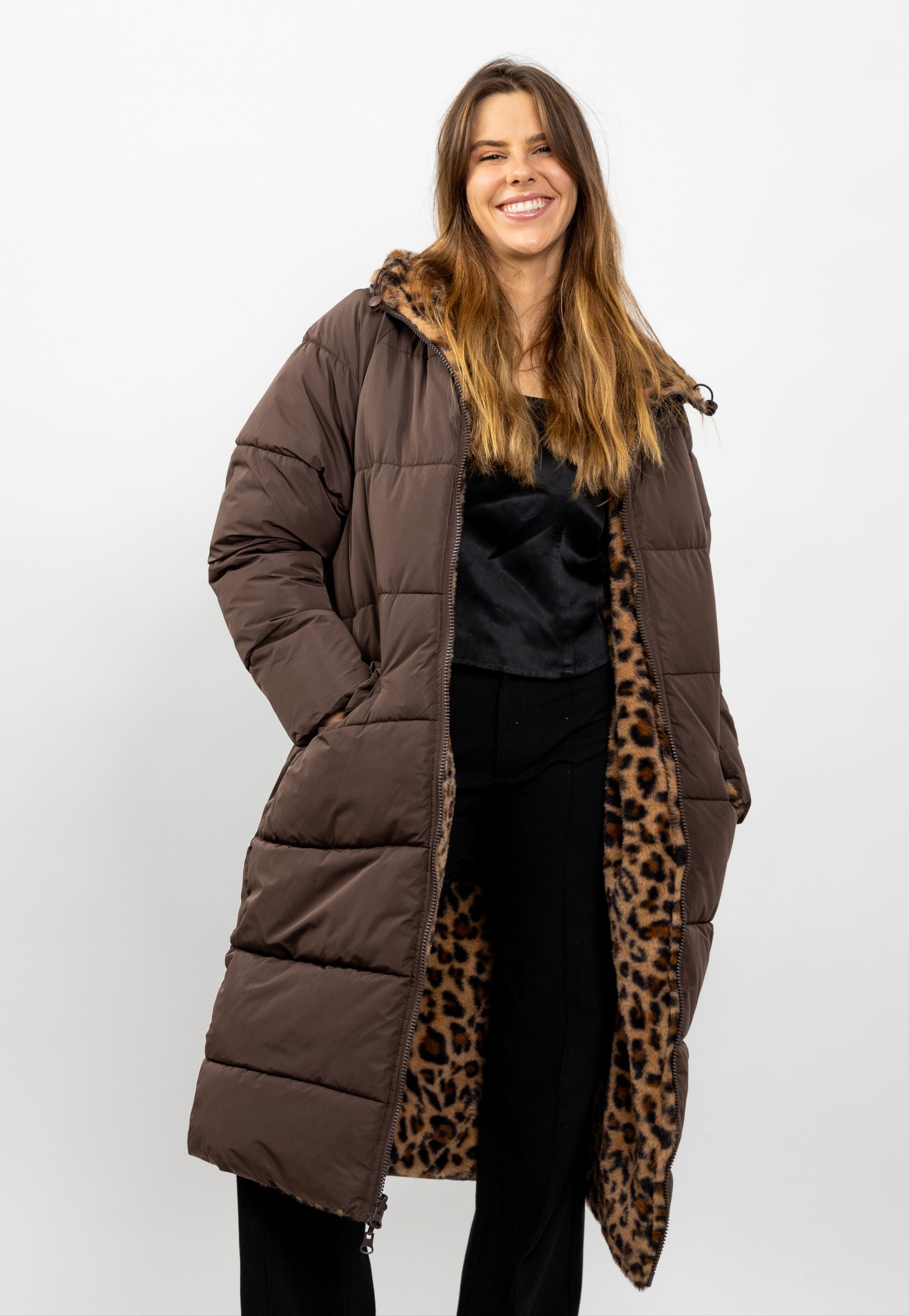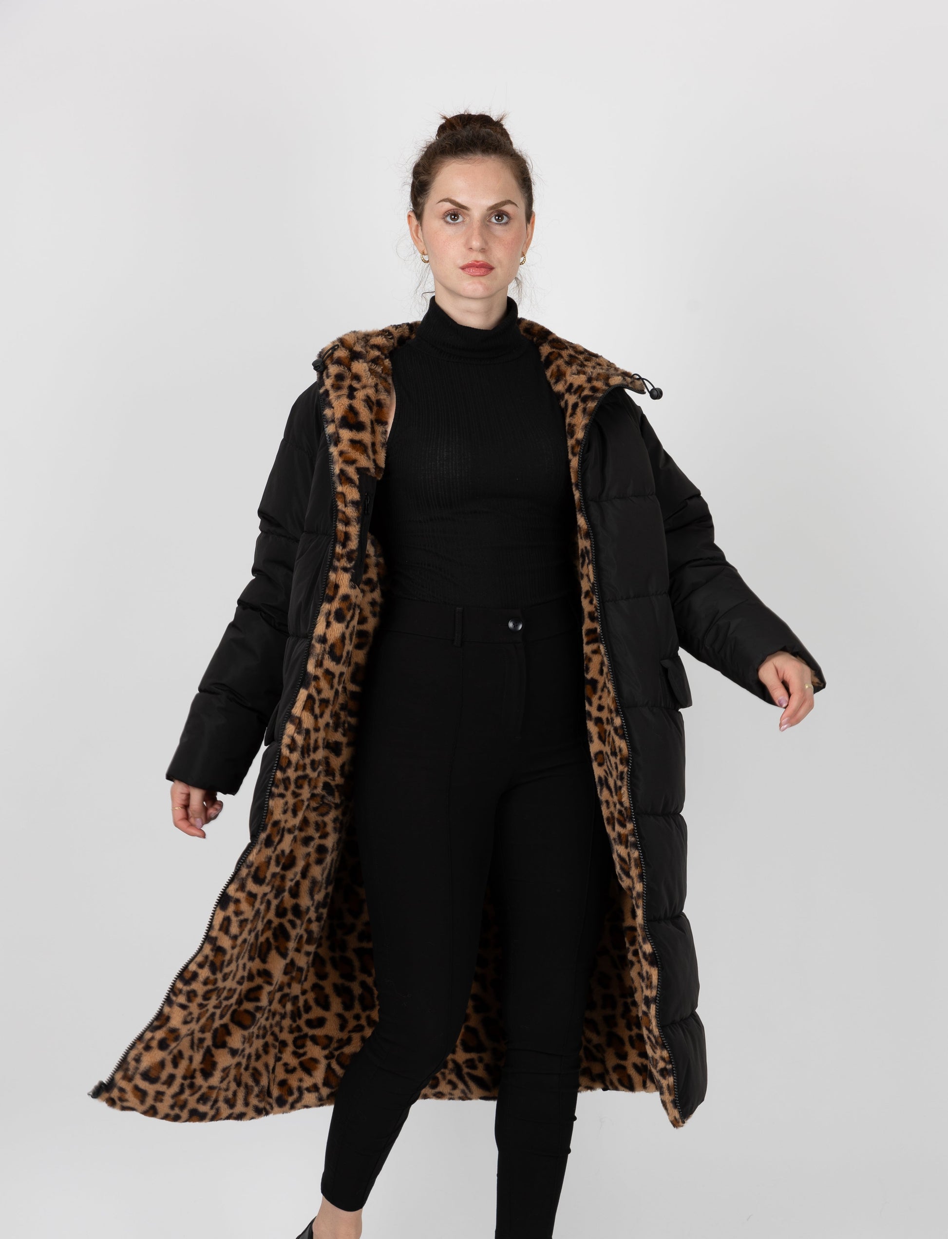 DOUDOUNE LONGUE RÉVERSIBLE EN IMPRIMÉ LÉOPARD