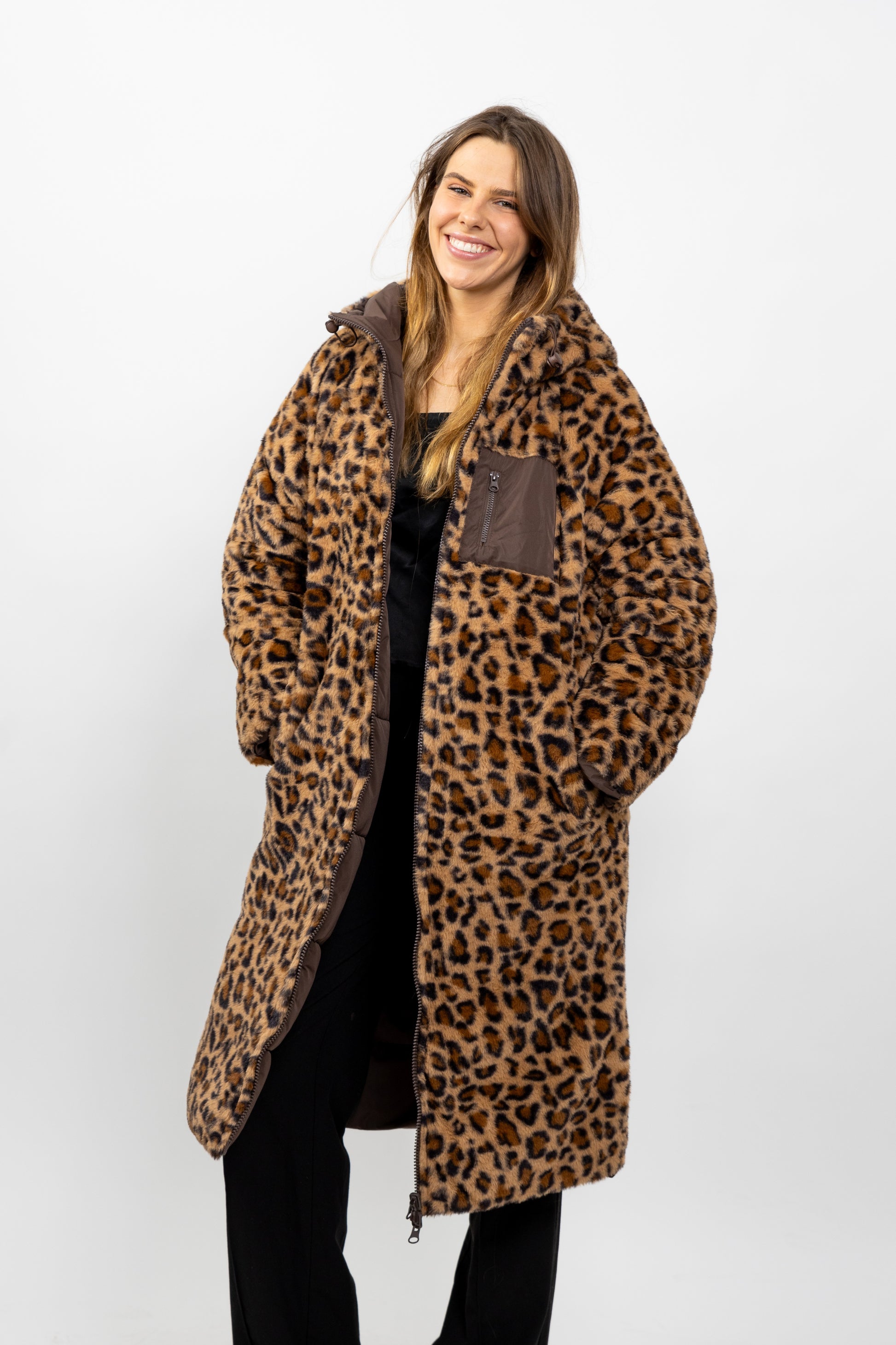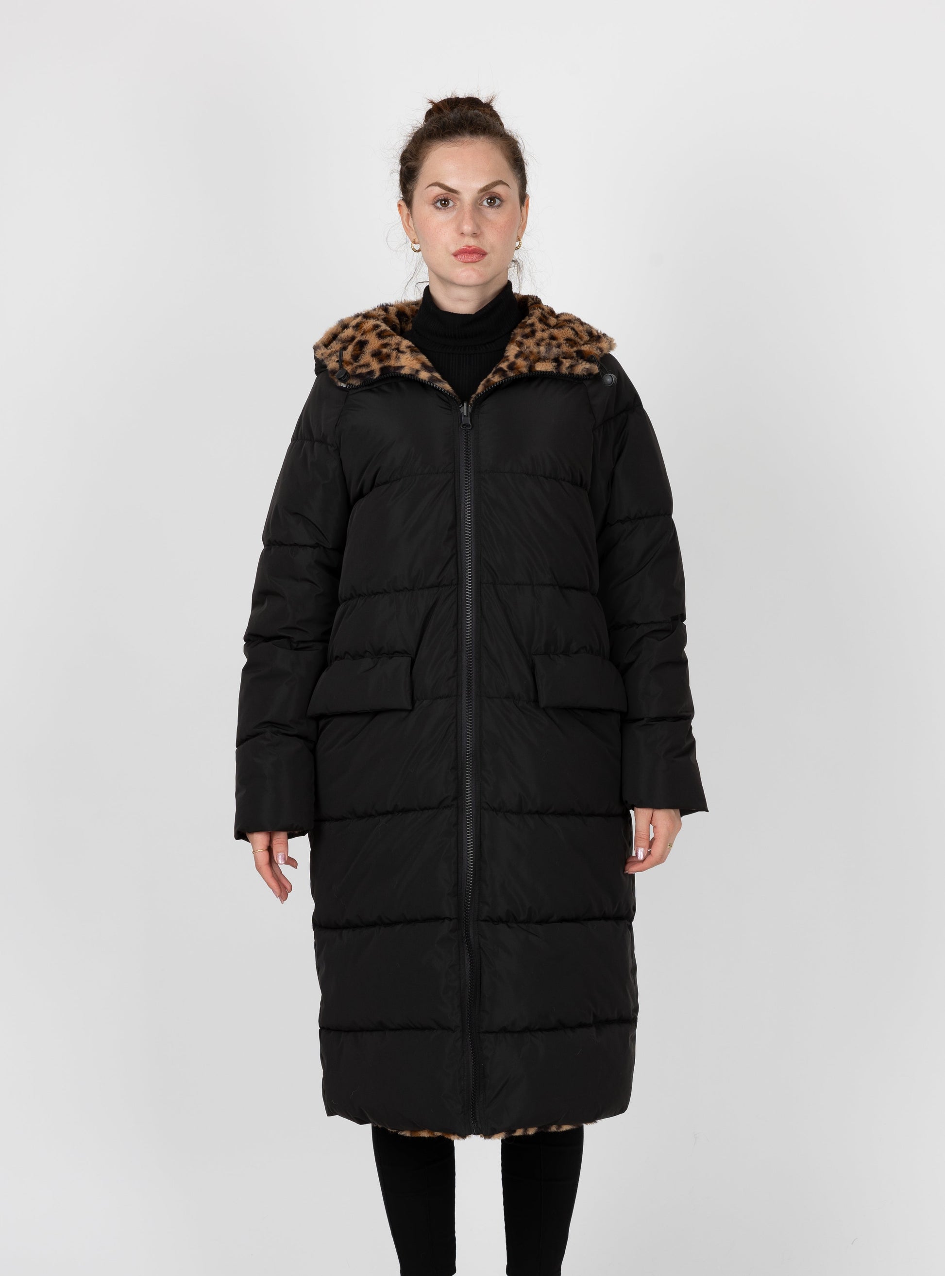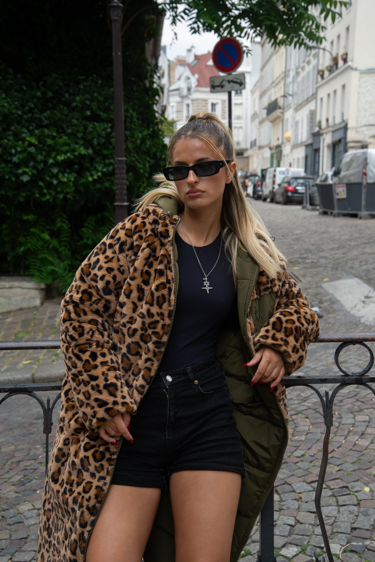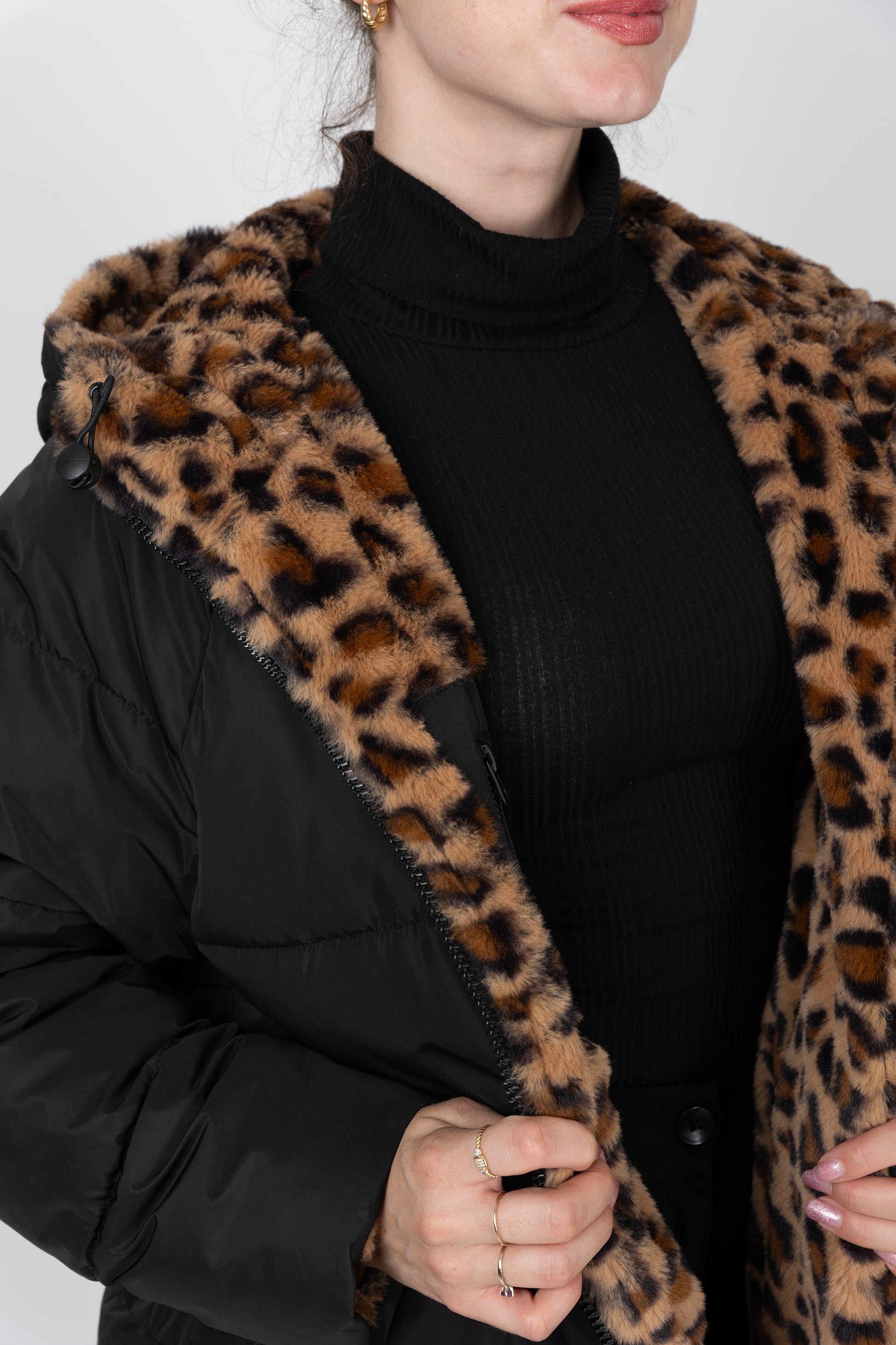 DOUDOUNE LONGUE RÉVERSIBLE EN IMPRIMÉ LÉOPARD