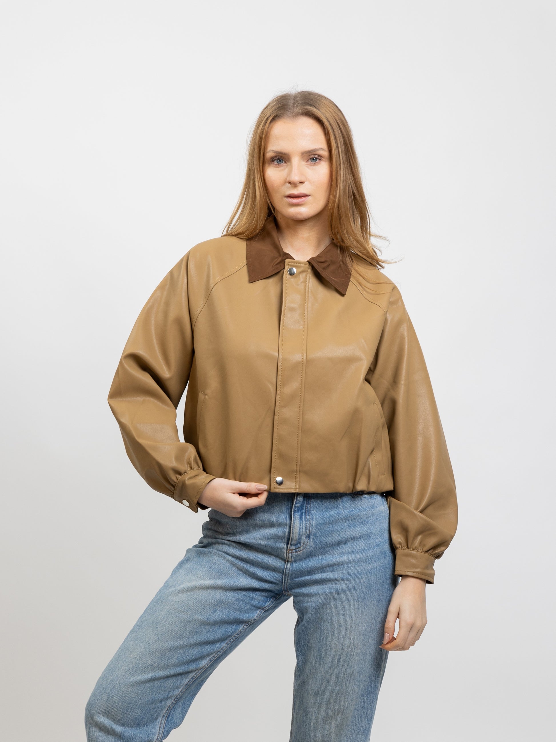 VESTE EN SIMILICUIR À COL CONTRASTÉ