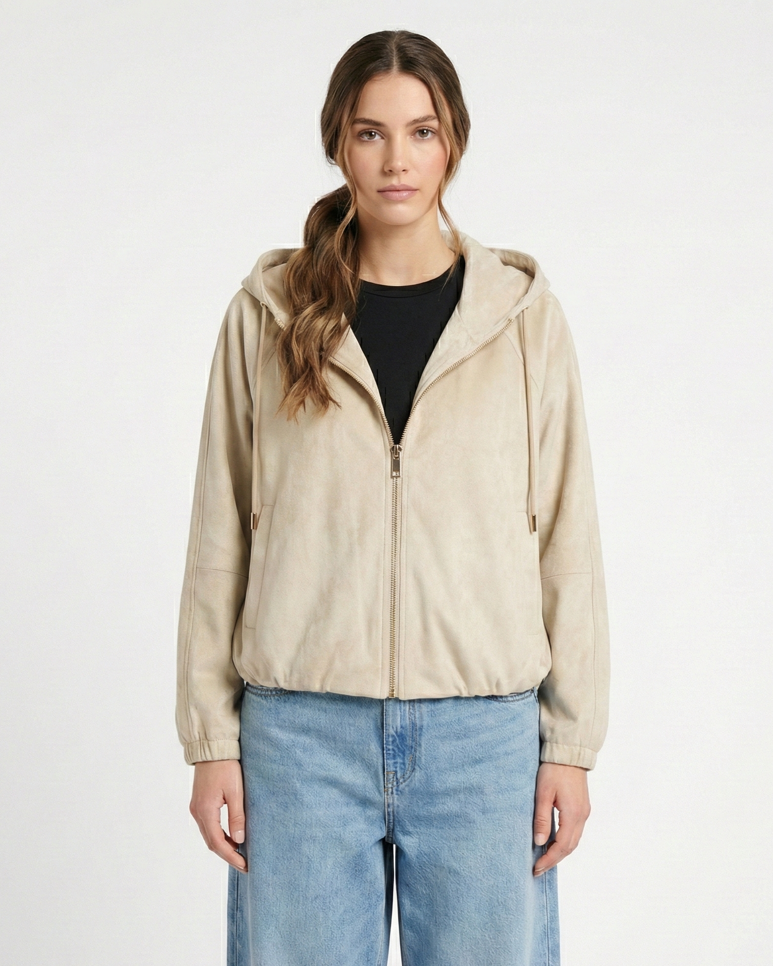 VESTE ZIPPÉE À CAPUCHE EFFET DAIM