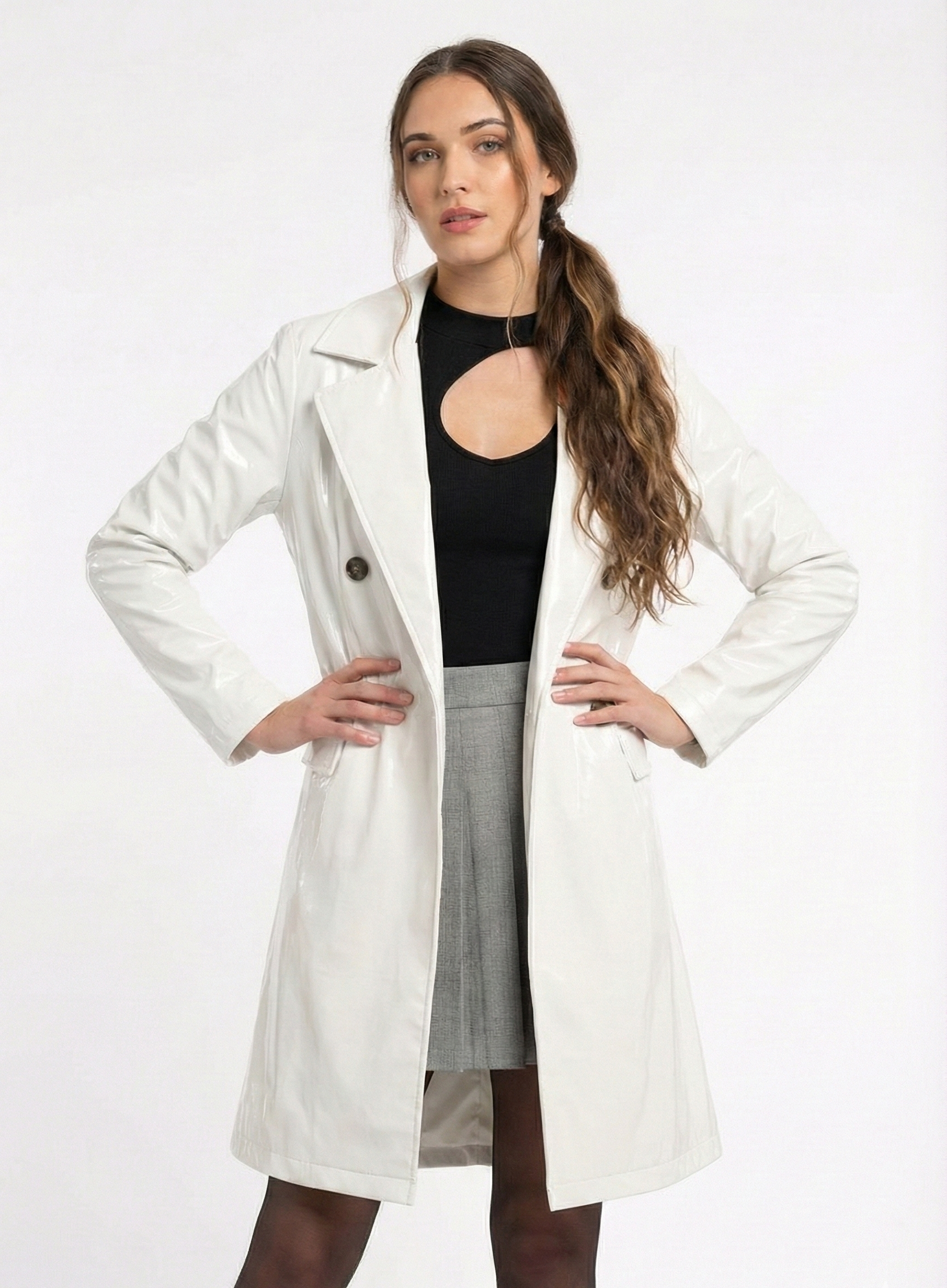 Que ce soit pour une occasion chic, une journée en ville ou une soirée décontractée, ce trench en vinyle est un incontournable !